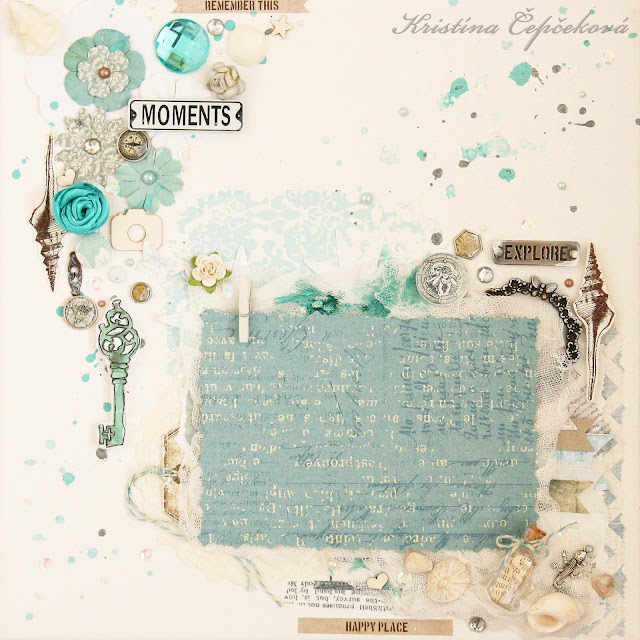 I received a beautiful digital stamp, which I had chosen from their e-shop. I was creating a card with this stamp on which is portrayed a girl with the wind and little birds in her hair. So cute, don't you think? ;) I didn't paint this stamp - I left it without color and glued some butterflies, glitters and pearls in girl's hair. I love the result!