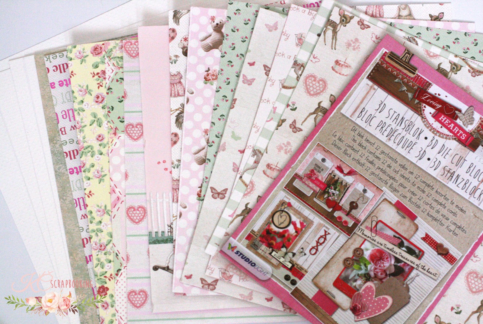 Neodolala som bielym papierom s embossovanými bodkami (akoby vypuklinky), dievčatkovskej sade krásnych papierov s rôznymi efektmi (fóliované, glitrované, štrukturované) a romantickej papierovej stavebnici. Moju tvorbu s ňou ste už mohli vidieť v tomto príspevku. Je sladká a vo vintage štýle, niektoré obrázky naozaj nemajú chybu a vyzerajú ako živé, napr. štipčeky či výšivky.