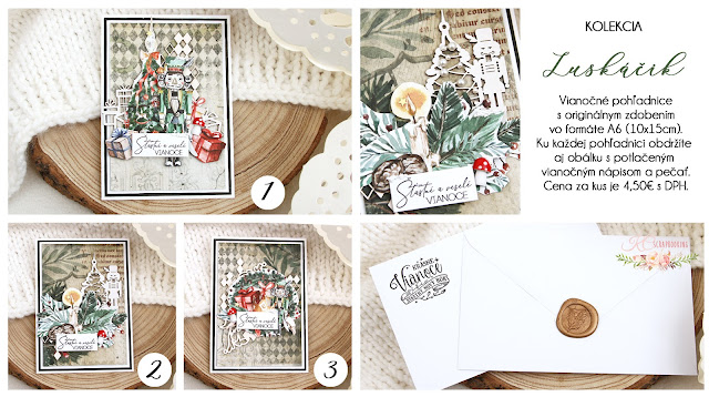 Ručne vyrobené pohľadnice s nádherným vianočným zdobením vo viacerých vrstvách. Ku každej pohľadnici obdržíte aj obálku s potlačeným vianočným nápisom a farebne doladenú pečať.